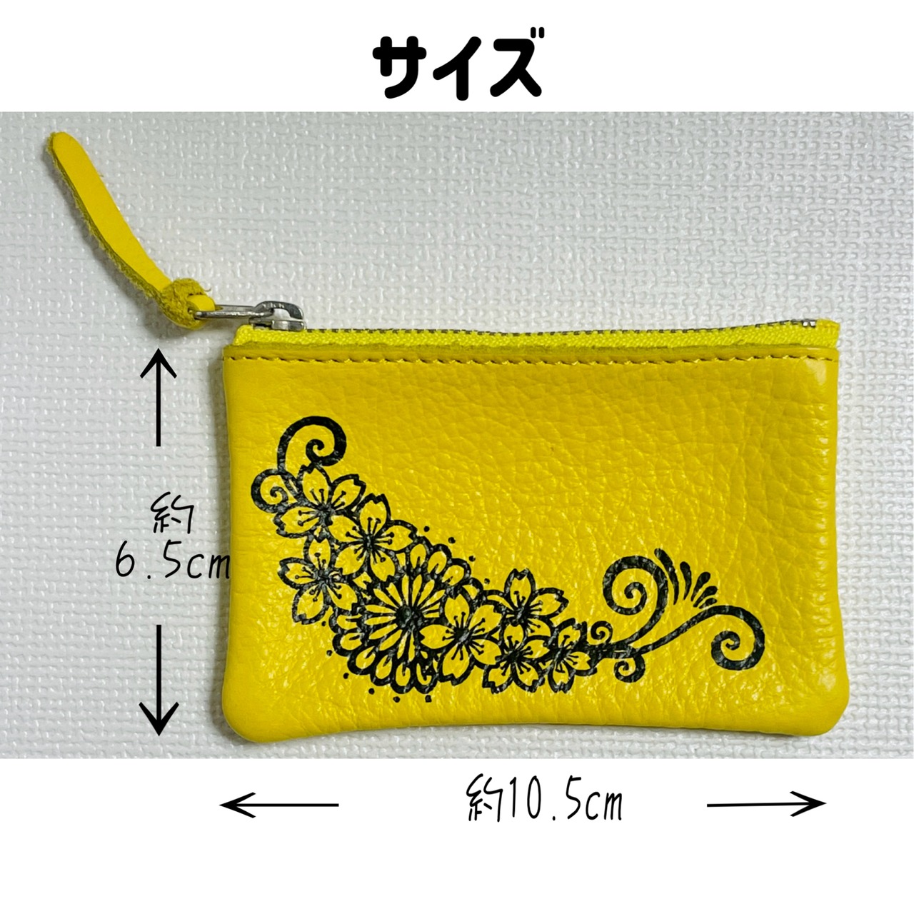 花の模様を本革のポーチに、直に書き上げた、世界に1つのミニポーチです。