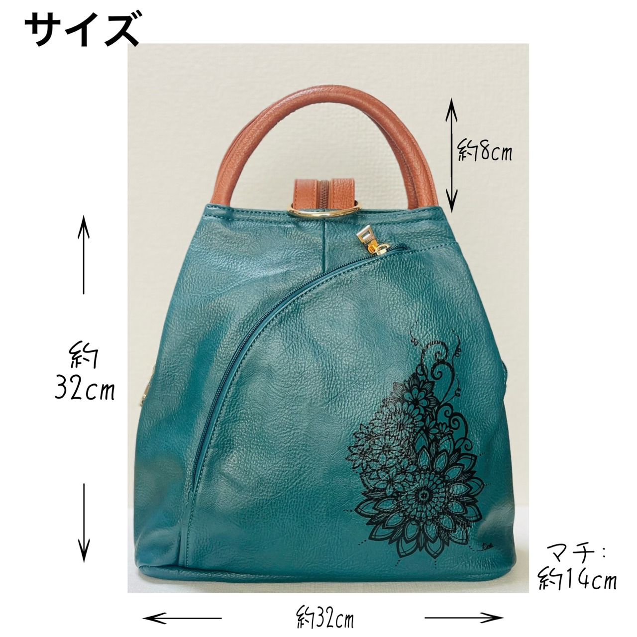 花文様デザイン シンセティックレザー リュック(手描き)