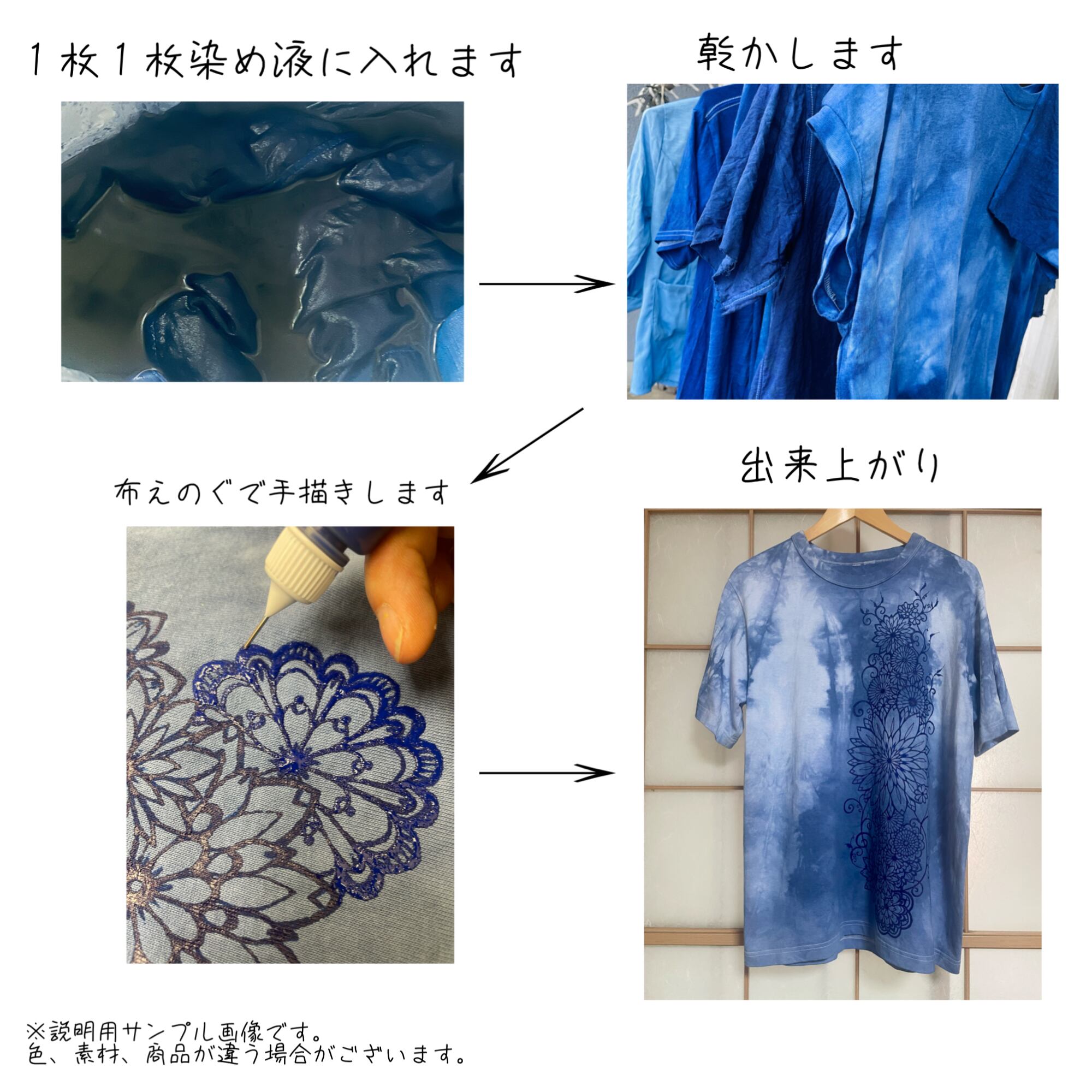 あえて、『ムラ染め』で作る事で、1点物のムラ染めTシャツが出来上がります。