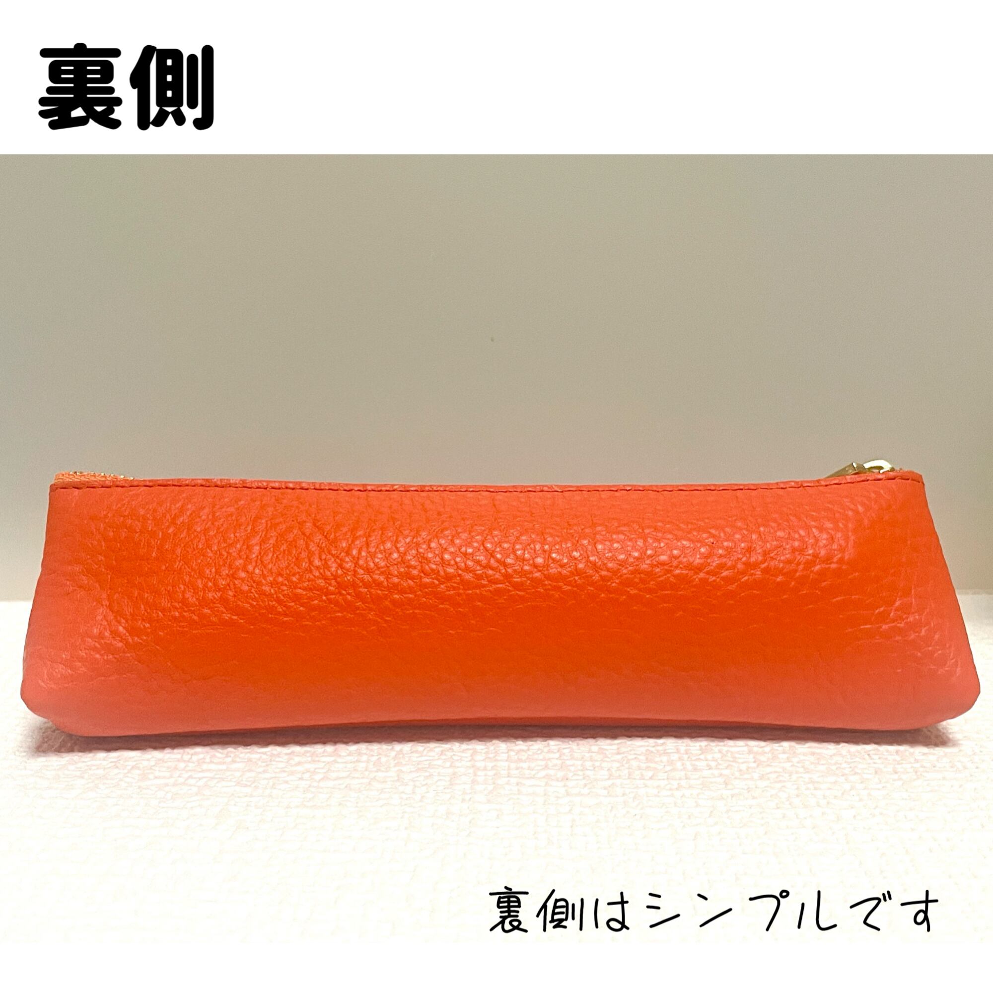 陽だまりのような温かみのあるオレンジ色の本革に、繊細な花々をあしらったペンケースです。
