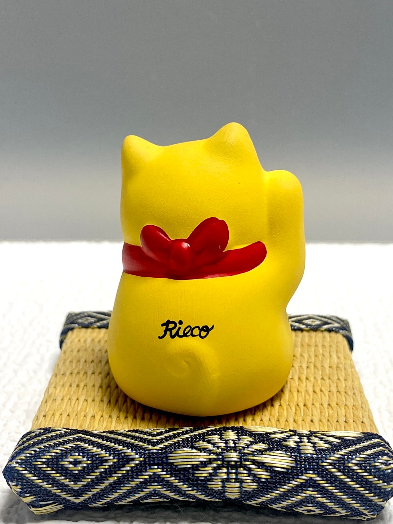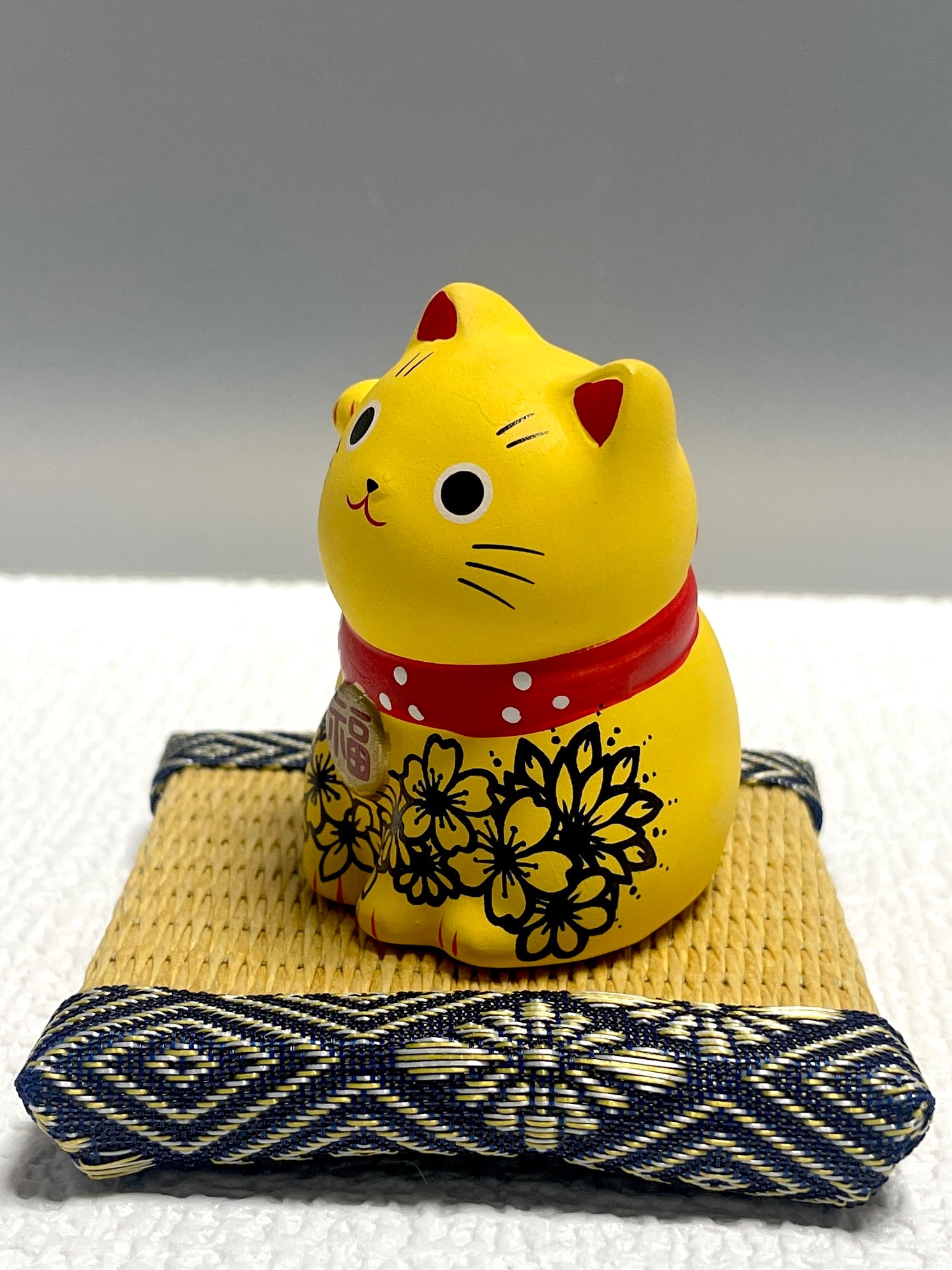 小さな招き猫の、手足の凹凸に、ペン先を入れて、花の模様を描くのは、集中力も必要で、少し大変(笑)