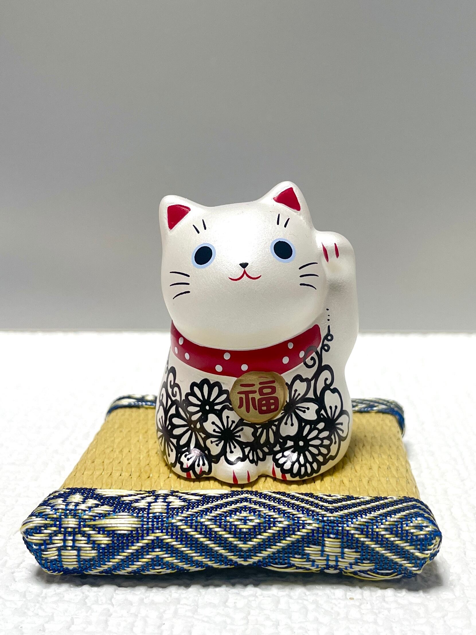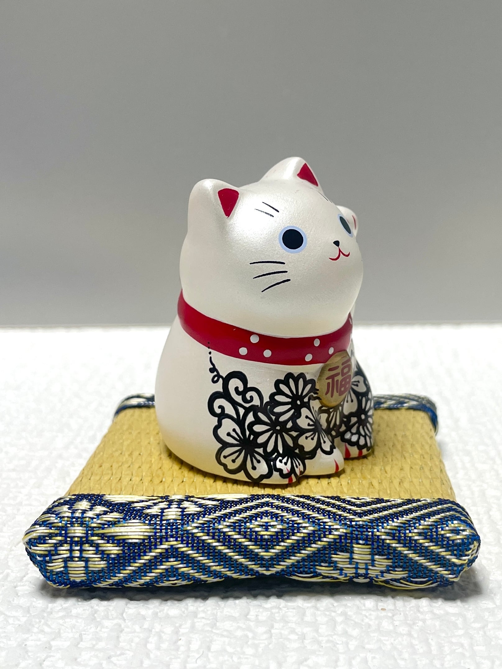 小さな招き猫の、手足の凹凸に、ペン先を入れて、花の模様を描くのは、集中力も必要で、少し大変(笑)