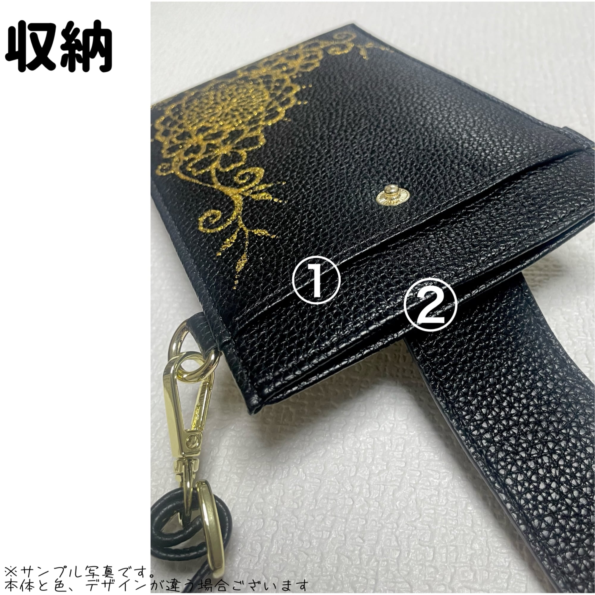 黒のポシェットに、ひとつひとつ手描きで金の花文様を描き入れた