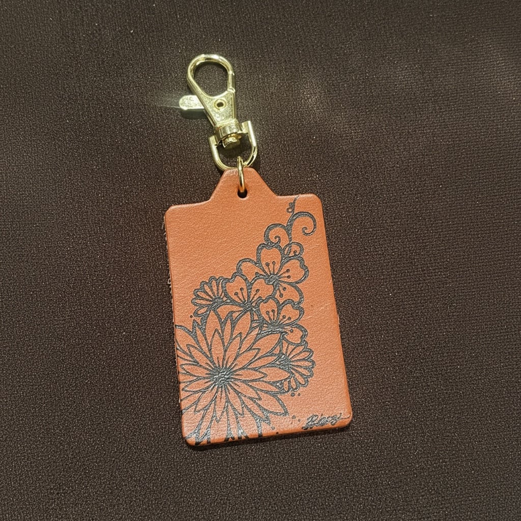 このバックチャームは、革素材の温もりと手描きの独特な風合いが感じられます。使い込むほどに味わい深く育つため、長くご愛用いただけるアイテムです。