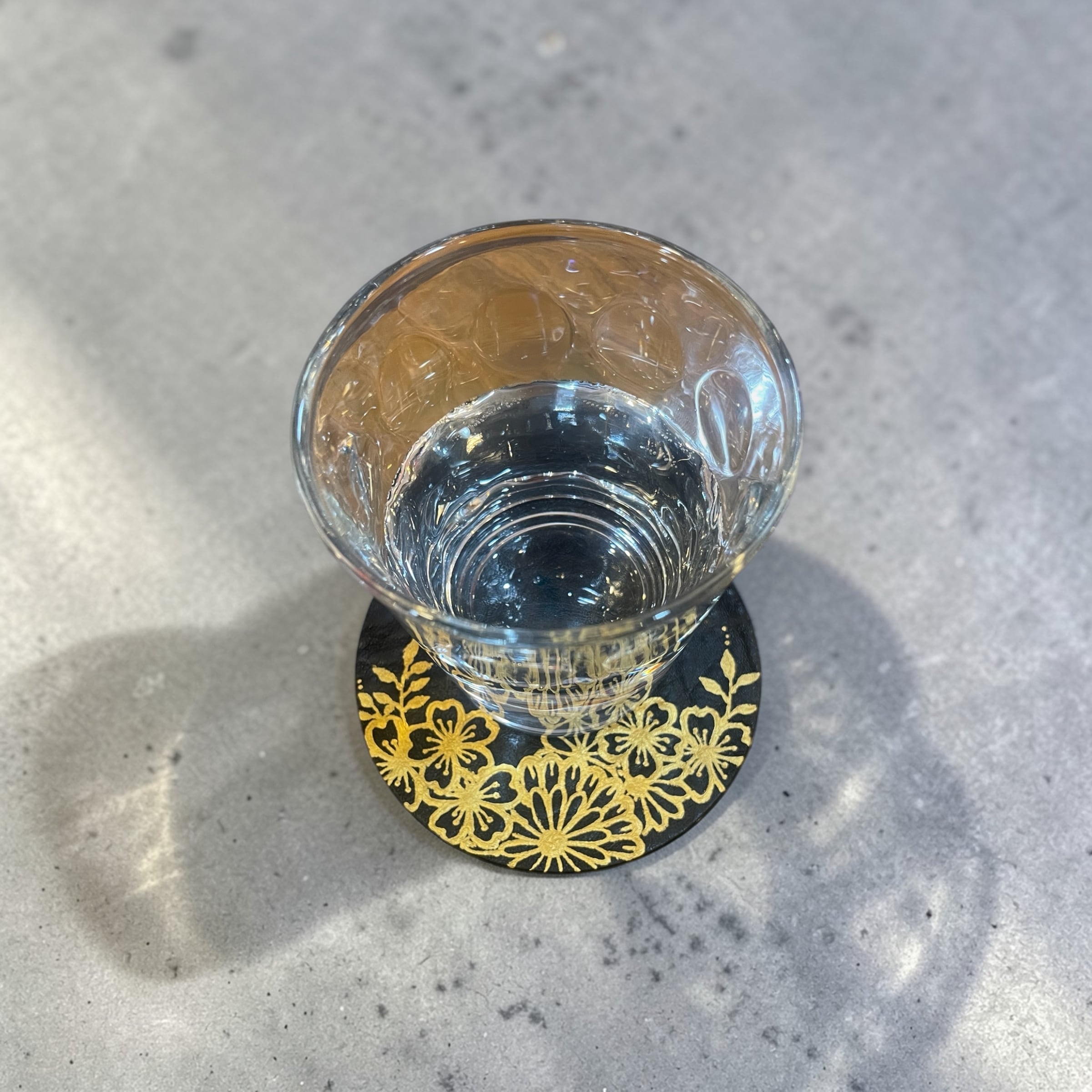 牛革のコースターに贅沢に手描きされた花文様が新登場です!