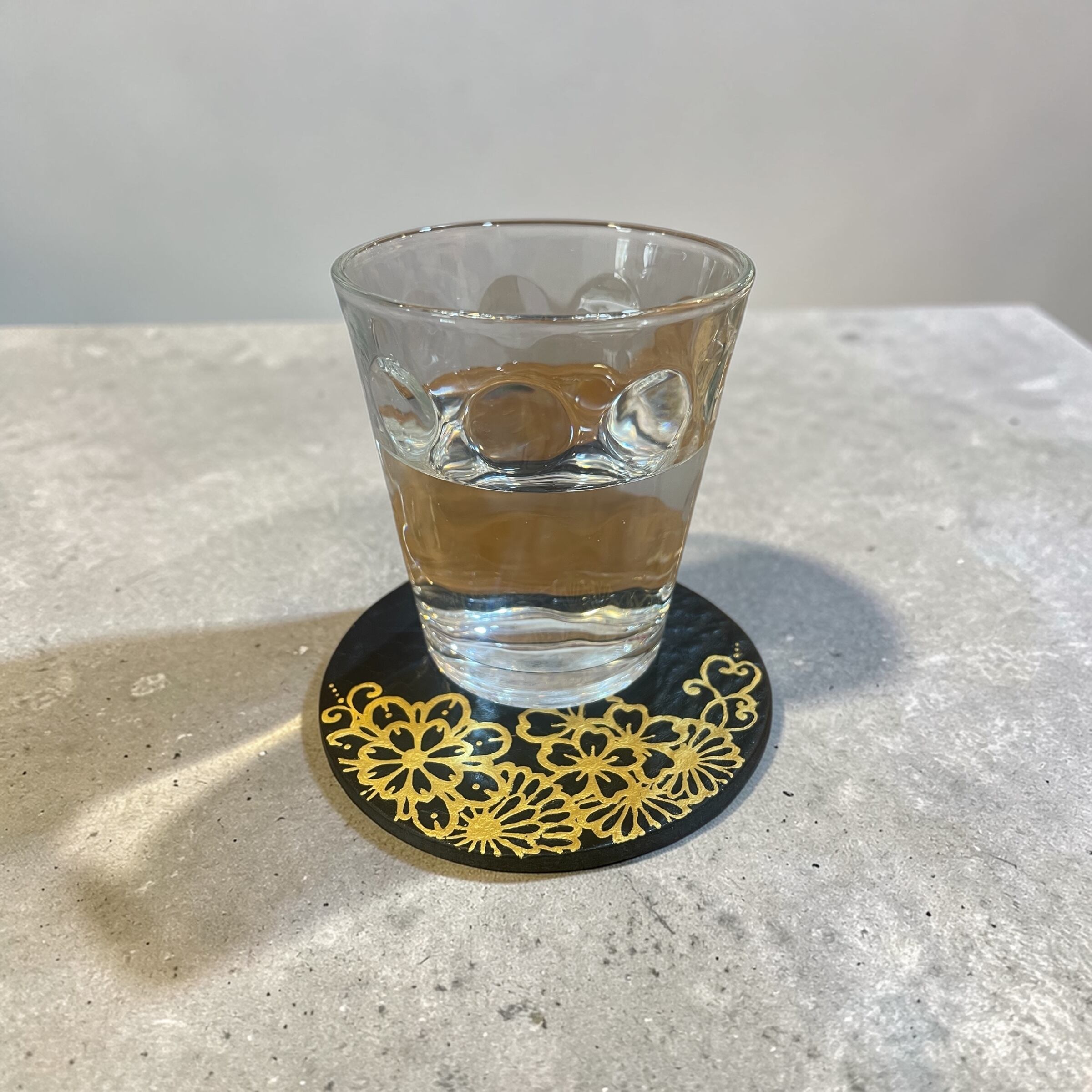 牛革のコースターに贅沢に手描きされた花文様が新登場です!