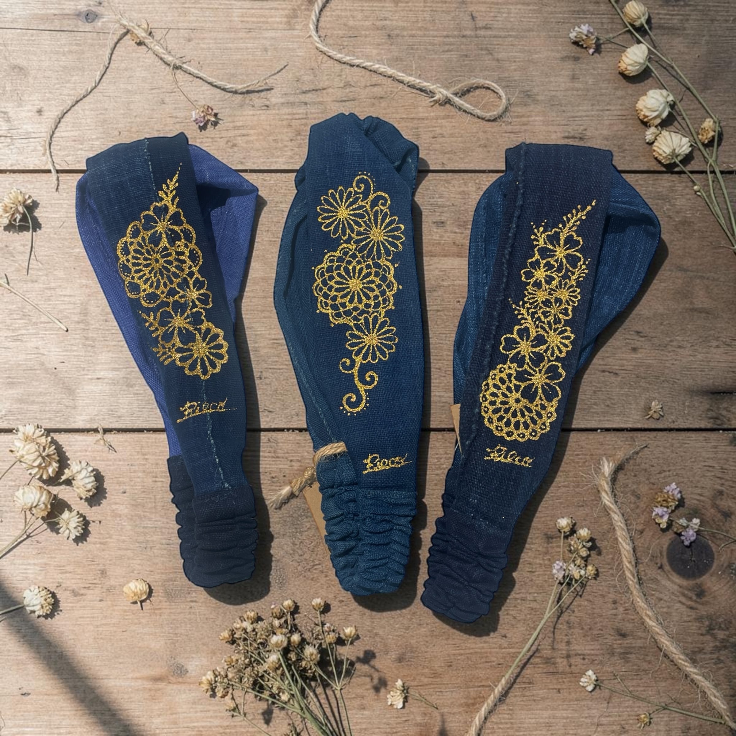 モン族の伝統技術を活かした藍染ヘアバンドに花文様を手描きした新作が登場!!