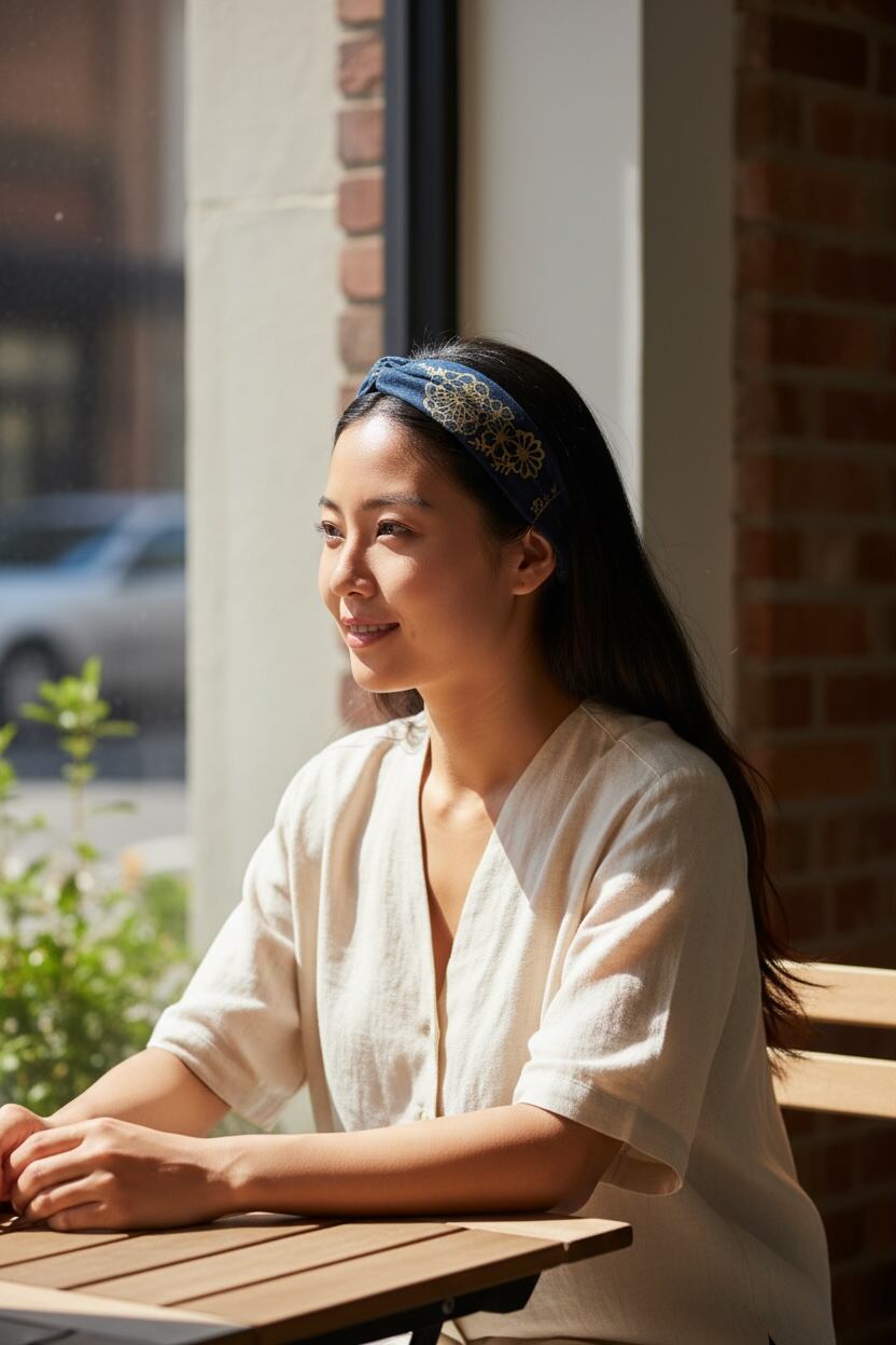この手描き藍染ヘアバンドは、あなたの髪型をスタイリッシュに演出するアイテムです。