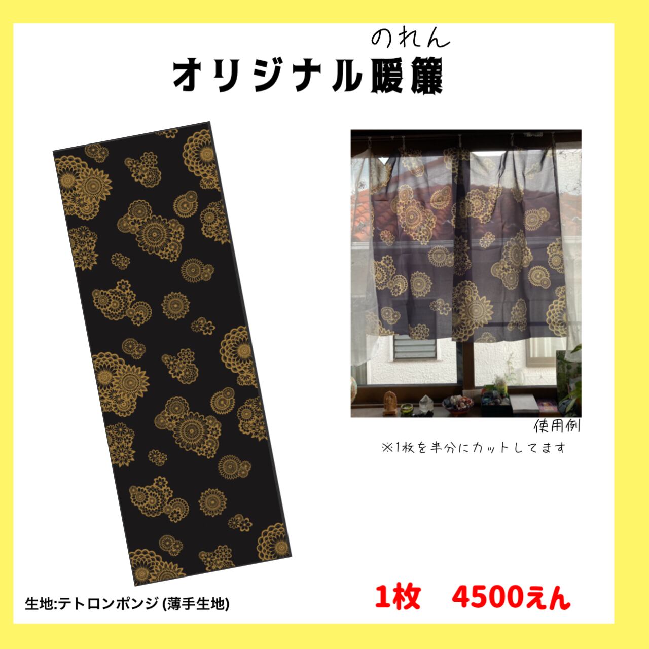 花文様ー暖簾ー 「永遠に繋がる花文様」(黒金風)